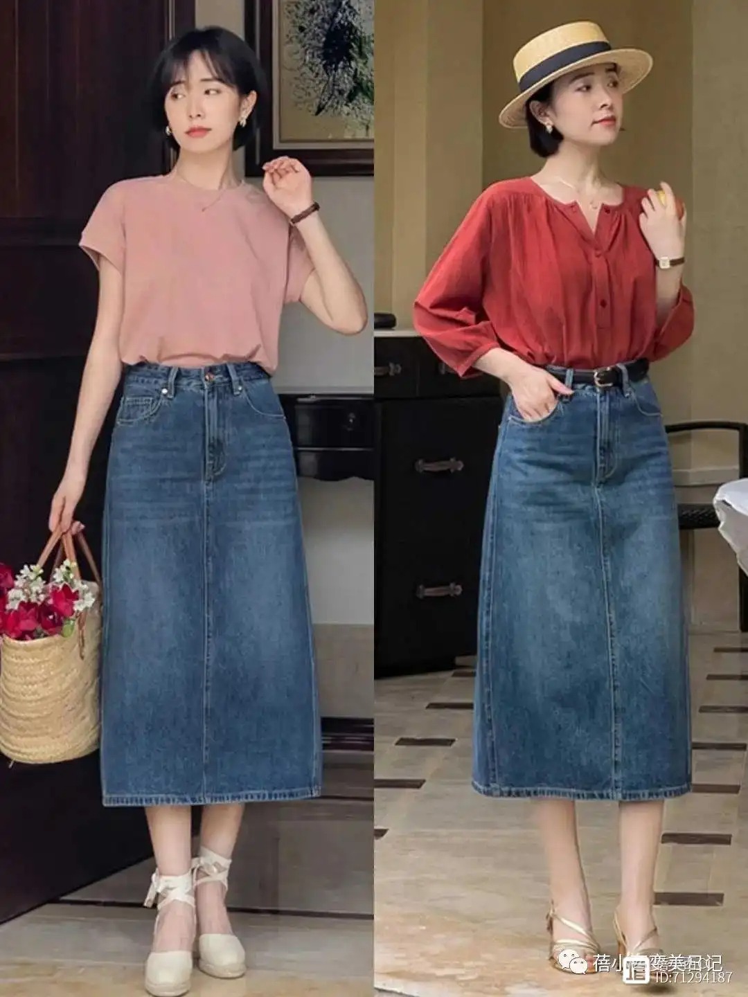 ①T恤搭配牛仔半身裙