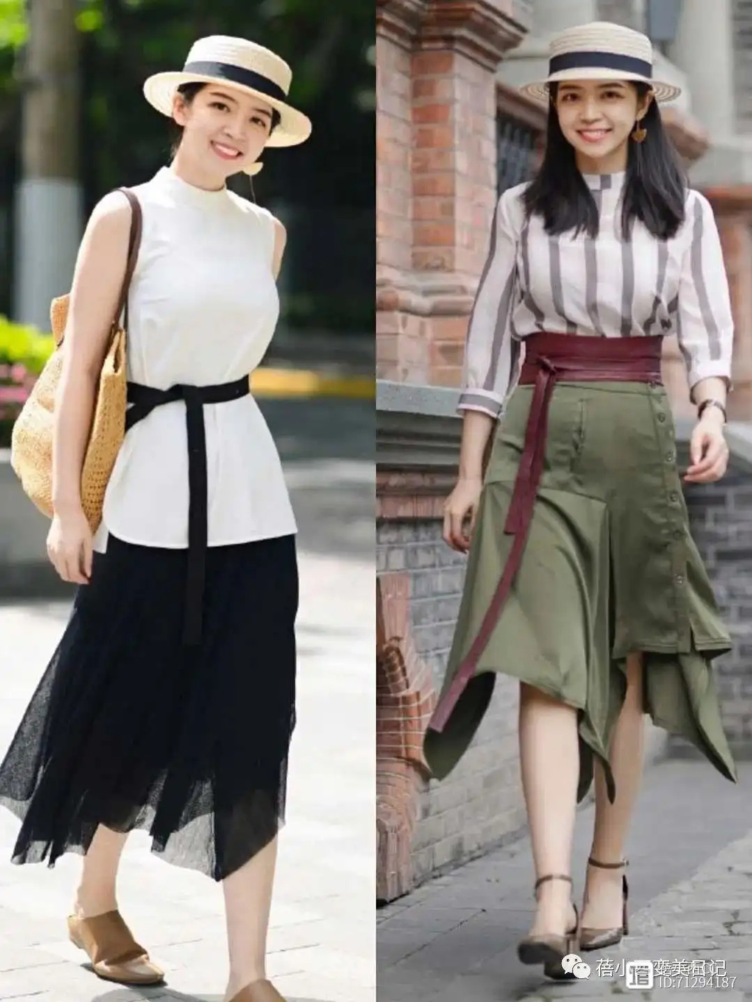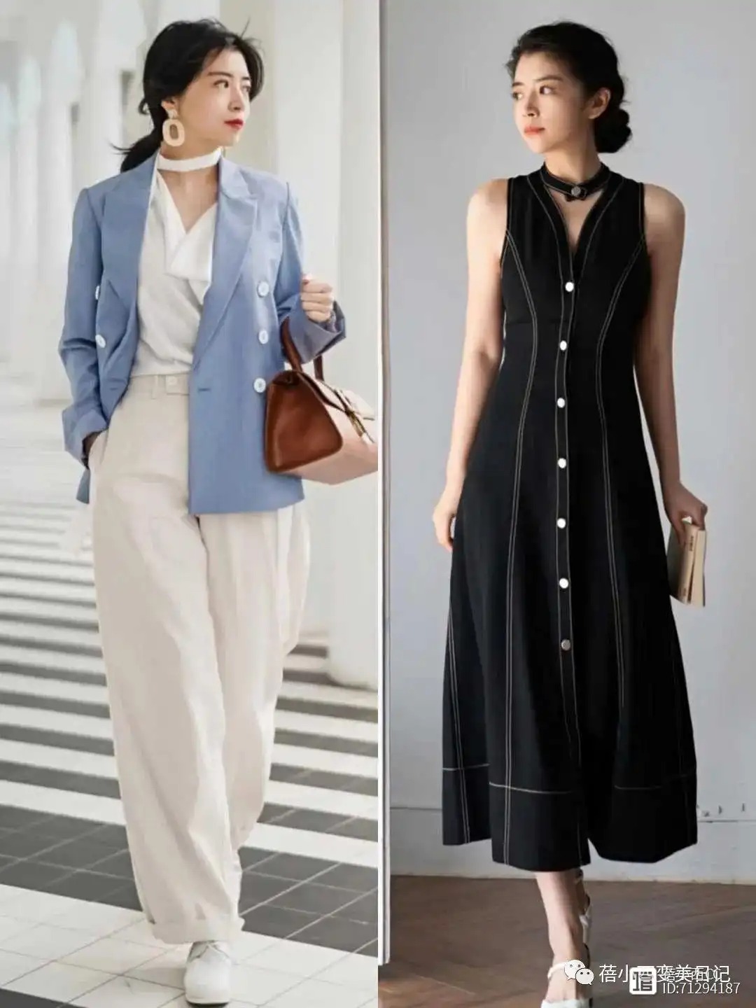 这些博主们不管是在穿连衣裙还是在穿西装外套时,都会懂得通过露肤来体现个人的身材,比如我们在穿西装的时候,里面可以去搭配一些低领的服饰,将颈部的线条露出来非常显瘦,穿连衣裙的时候也可以考虑无袖的设计,修饰手臂线条,更显轻盈感。而且在春夏你也可以尝试露脚踝,比较保险,就算微胖也可以尝试。