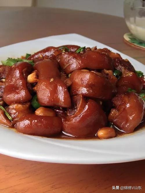 1、猪蹄洗干净,刮净毛后切块;花生米用温水泡透;生姜切片,冬菇去蒂洗干净;