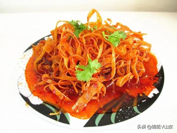 2、锅上火加入适量的清水,水开后下入千张丝焯水,水再次烧开把千张倒出控水,并用冷水冲凉备用。