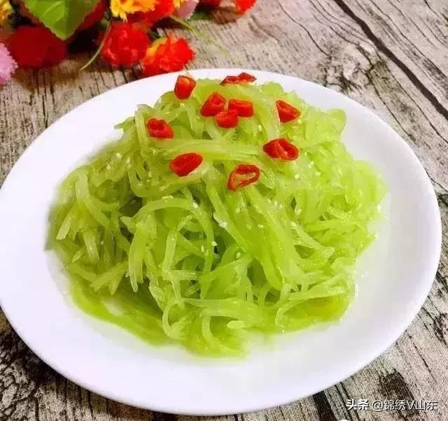 5、把调好的料汁浇在焯过水的莴笋片上,拌匀就可以了,超级美味。