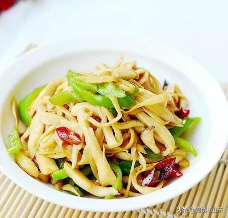 1、杏鲍菇手撕成条,青椒切块,干辣椒,蒜切片。锅中倒入少许油,杏鲍菇先在锅中干煸。