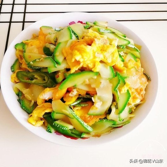 4、炒锅放油,下入西葫芦片翻炒。加入剁辣椒、食盐。快火翻炒均匀。下入鸡蛋,翻炒至鸡蛋熟,加入少许鸡精调味,关火装盘食用。