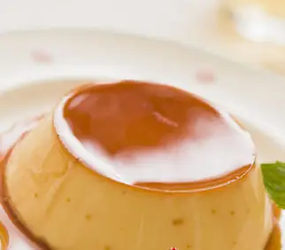 6、冷藏后把布丁从模具中翻一面倒入盘中,可用刀在周围切一圈,以便分离模具和布丁。