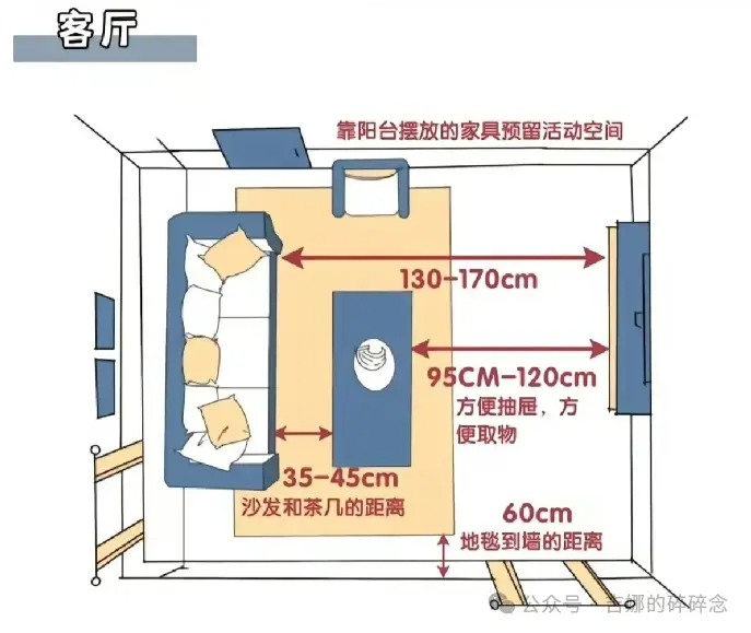活动空间优先:任何功能区都要预留足够的活动空间,如过道至少60cm,主通道90-120cm。