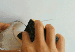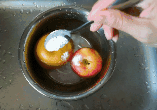 此时可以用洗碗海绵沾点水再蘸点小苏打