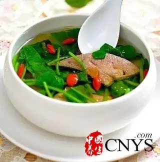 组成:枸杞子50克,猪肝400克,生姜2片,盐少许。