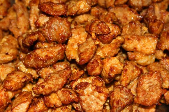 【五香炸肉】做法:1.肉洗净,切成均匀的长方形小块儿;2.在肉块儿中,加入味极鲜、五香面、姜面搅匀,静放15分钟,入味儿3.将鸡蛋打入和好的肉块儿中,这样炸出来的肉更金黄,有食欲;4.加入面粉,让肉片儿有酥脆感;5.搅拌均匀后,先用小火将肉块儿炸熟,再用大火炸一会儿,让外壳变硬。这样炸出来的肉,外焦里嫩,香脆可口,装盘即可~