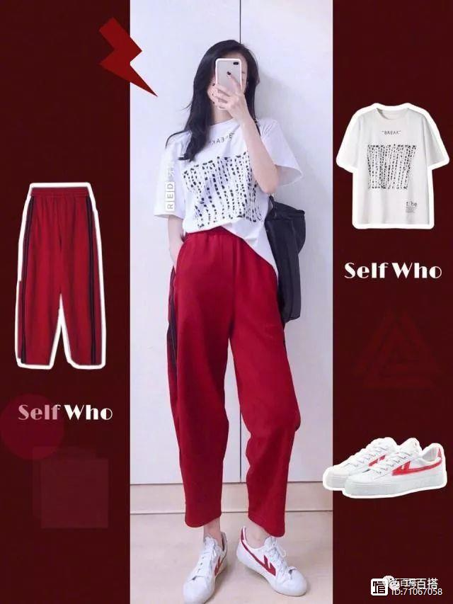 看过了清爽的穿搭我们这来看一下热烈是火吸睛的穿搭,这套搭配其实会比较的简单一些,但是因为配色的原因,所以穿着上身会比较的街头感比较的吸睛。是非常简单的t恤加长裤,风格偏向于休闲,比较的适合日常生活穿着或者比较喜欢舒适风的女孩子选择。