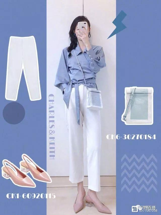 清爽又知性的一套搭配,搭配的米白色的直筒的白色长裤还具有很好的修饰效果,即使腿上的肉肉特别多,但是穿着上身也可以非常的显瘦。搭配上尖头的高跟鞋更是如此,不过说到点睛之笔,那么必定是这款衬衫了,这种清新的衬衫本身就是特别的惹人喜爱,更别提个性设计的了,很是时髦。