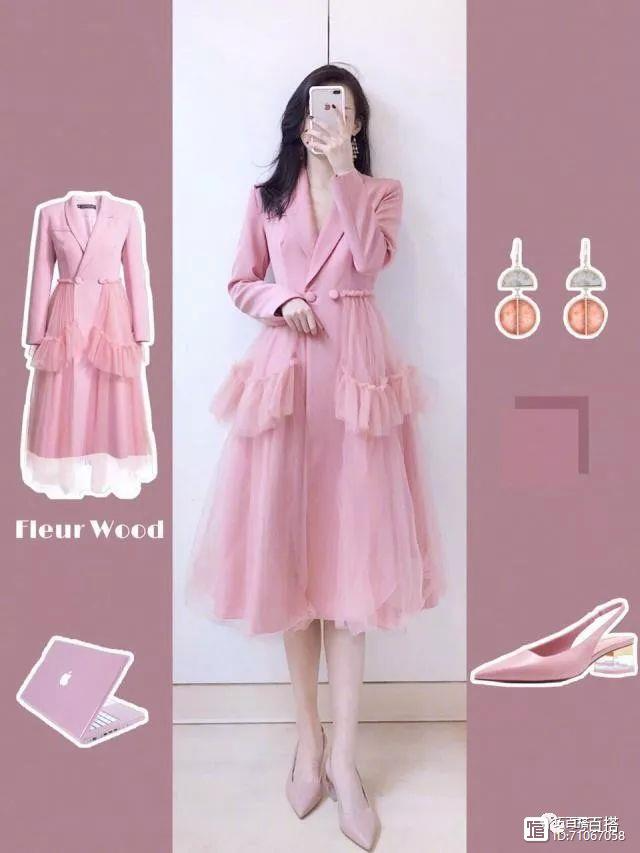 非常简单的一款小裙子,但是穿着上身就是有独特的知性气质,非常的优雅非常的女人味。配色颜色的话是比较减龄的粉色,还可以抬气质显白的。