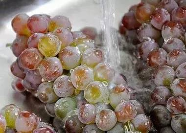 吃葡萄时,先拿剪刀剪掉根蒂部分,使其保留完整颗粒,并浸泡稀释过的盐水,达到消菌的效果,冲洗干净表面还残留一层白膜,可挤些牙膏,把葡萄置于手掌间,轻加搓揉,过清水之后,便能完全晶莹剔透,吃起来更安心!