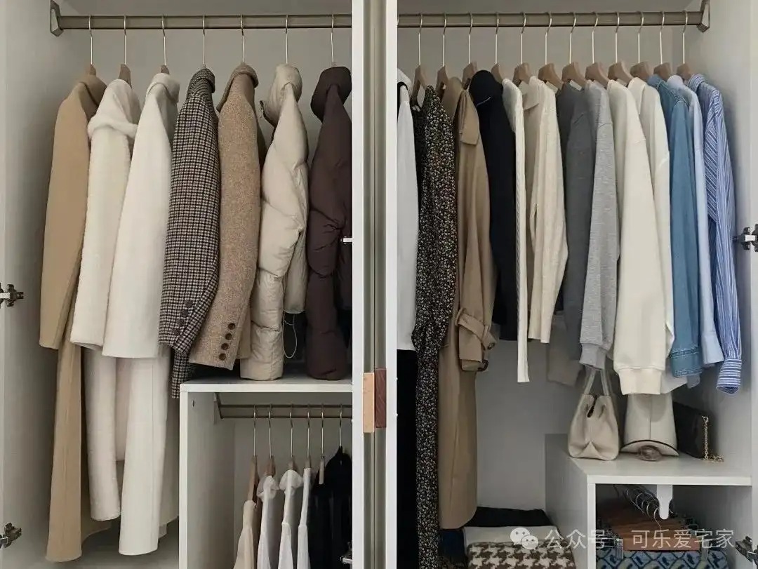 收纳空间最好永远保持8分满,比如我家的衣柜,永远预留20%的空间,这样整理起来特别轻松,衣服也不容易起皱。冰箱也是一样,留出适当空隙让冷气循环,食材保存得更好。