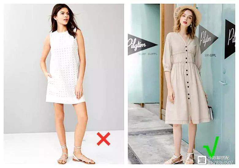 再来一组对比,当然也不要选择左图中的A字裙,衬得腰身又宽又粗,选择右图中剪裁好的连衣裙当然,利用带有收腰效果的衣服来勾勒腰身,优雅大气,又不失淑女的风范。