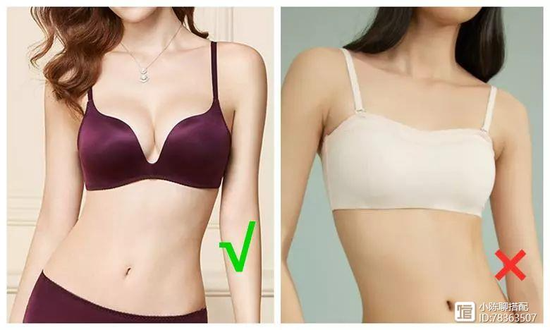 直筒身材的姑娘最大的痛苦就是没有令人满意的胸部,可以从根源处丰盈胸线。直筒妹千万不要选择右图的裹胸类内衣,只会显得胸部更加平小,可以选择左图中具有聚拢丰胸的内衣,让直筒妹在打造淑女风更加自信。