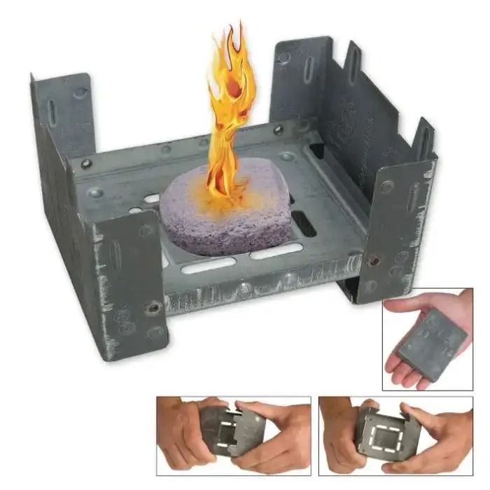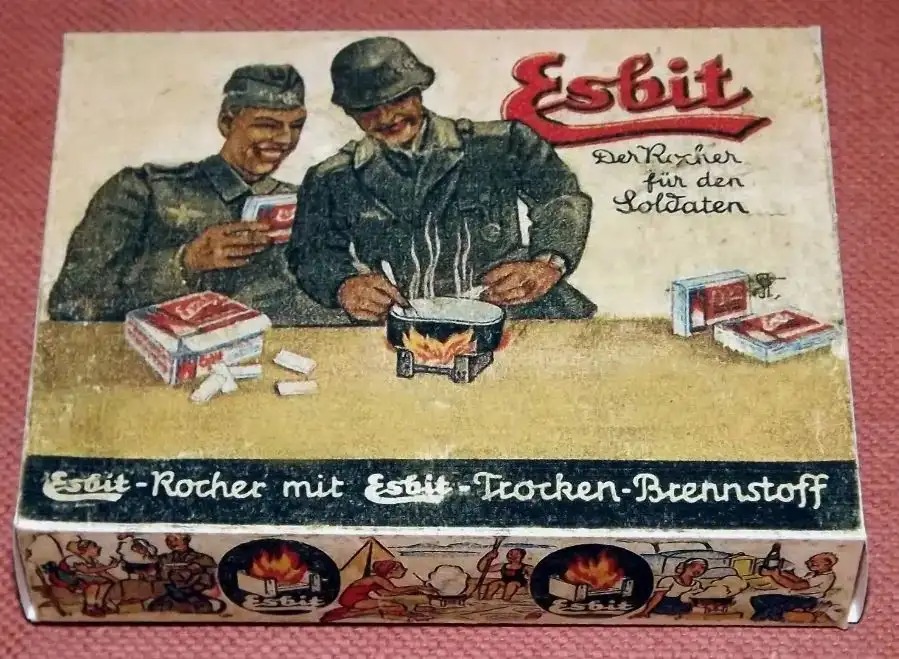 Esbit折叠炉是1936年德国发明的小型便携式炉,可以在远足和旅行的休息时加热食物和饮料。二战期间国防军发放给士兵,士兵也可以自行**。Esbit折叠炉是一个可折叠的镀锌钢支架,里面有20片燃料片,可以重复使用多次,方便士兵加热野战饭盒。
