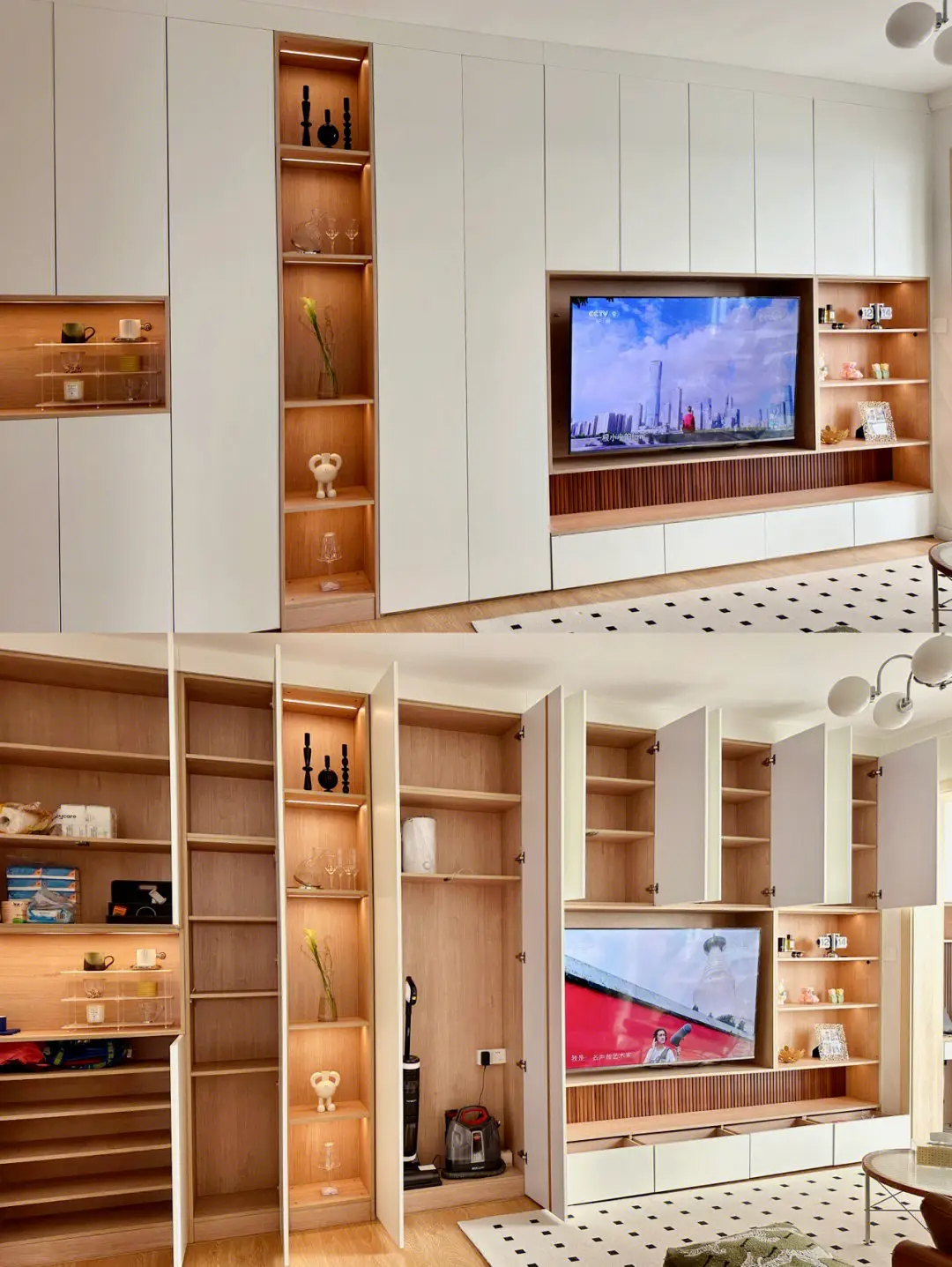 想要客厅空间有超高的收纳能力,少不了一门到顶的高颜值电视柜收纳设计。它不仅能充分利用纵向空间,提高储物能力,还能打造大气简约的空间视感,从而拉升客厅的颜值。