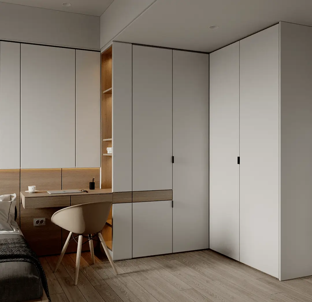 卧室最主要的收纳空间——衣柜,不管是大大小小的被子、衣物,还是各种不常用的杂物都可以放进衣柜储存。所以需要合理的利用卧室空间,打造一个合适的衣柜。
