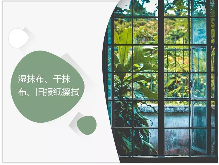 常规做法是先用湿抹布将玻璃擦拭干净,再用干抹布擦干,最后用旧报纸再擦一遍。如果玻璃上有难擦的污渍,可参考以下方法: