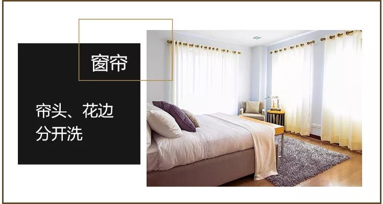 洗涤时尽量将帘头、花边等装饰物拆分开清洗,可先使用鸡毛掸和吸尘器仔细清除窗帘表面灰尘,然后在温水加中性洗洁剂浸泡窗帘。含绒布、丝质面料及一些高档纤维布料都是不宜使用洗衣机自动洗涤的,建议手洗或送去专门的清洗店。