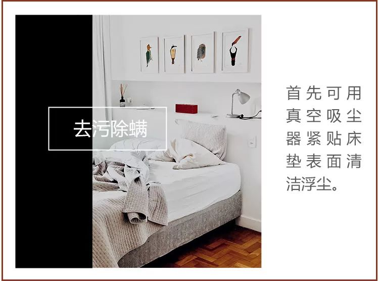 除螨:要想袪除螨虫,可准备一个喷壶,倒入花露水,加少许清水稀释,然后均匀地喷洒在床垫上,静置10分钟左右,用吹风机吹干即可。
